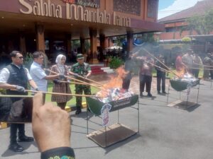 Mojokerto, Jawtimur. Pemusnahan dilakukan di halaman Kantor Wali Kota Mojokerto, kamis 23/10/25, sebelum seluruh barang dimusnahkan di PT Putra Restu Ibu Abadi (PRIA) Mojokerto dengan metode pembakaran, sehingga menimalisir bahan berbahaya tembakau dari rokok ilegal yang membahayakan pengunaan rokok, serta keamanan di sekitar lingkungan masyarakat.(Jumat 24-10-2025).